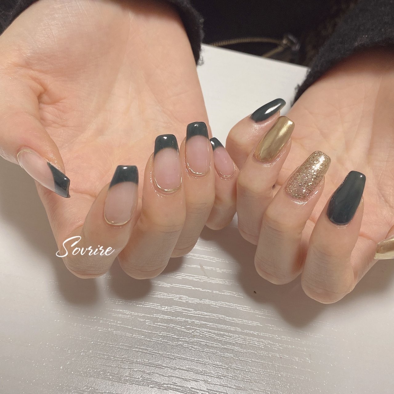 春 冬 オールシーズン ハンド フレンチ 𝐒𝐨𝐮𝐫𝐢𝐫𝐞のネイルデザイン No ネイルブック